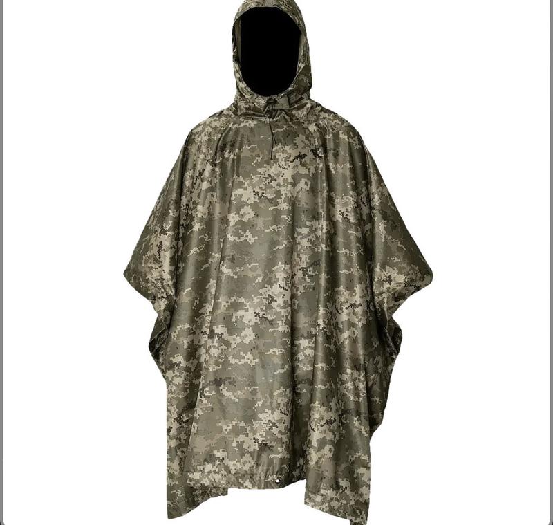 Плащ-палатка с люверсами. Дождевик пончо для военных, плащ-палатка тактический камуфляж пиксель Надежный и качественный дождевик-пончо, выполненный из сверхпрочной водонепроницаемой такни. Дождевик можно использовать как палатку (дождевик оснащен специальной фурнитурой, чтобы быстро сделать палатку!) ХАРАКТЕРИСТИКА: качественная прочная ткань, водонепроницаемая. дождевик платки, продуманный дождевик, который быстро превращается в прочную и надежную палатку. чехол с фиксатором в комплекте. Подходит под любой телосложение, регулируется. не сковывает движения, быстро одевается. качество 100%, выполнено по стандартам. принт пиксель ЗСУ. Протестирован и надежен дождевик, рекомендую! Многофункциональное изделие, которое может служить влаго-витрозащитной накидкой от непогоды, тентом или палаткой, как временное укрытие от солнца и дождя или покрывалом на землю, а также мягкой подушкой под голову сложено в чехол. Отлично защищает от дождя, и не заменим в маскировке.