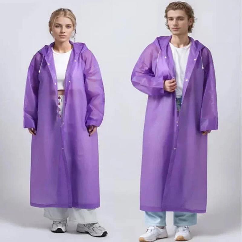 Дождевик с капюшоном на кнопках из EVA Фиолетовый Универсальный плащ для мужчин и женщин Дождевик с капюшоном на кнопках из EVA - это универсальный плащ фиолетового цвета, который подойдет как мужчинам, так и женщинам. Он выполнен из качественного EVA-материала, который значительно превосходит обычные полиэтиленовые плащи. Благодаря составу, включающему древесный каучук, дождевик мягкий и приятный на ощупь, что делает его комфортным для ношения. Он состоит из двух слоев: водонепроницаемого внешнего слоя и внутреннего, который не липнет к коже и не вызывает раздражений. Использование Этот дождевик идеально подходит для использования в дождливую погоду, обеспечивая надежную защиту от влаги и ветра. Его можно носить во время прогулок, поездок на природу, путешествий или просто в повседневной жизни. Благодаря компактному размеру, дождевик удобно хранить в сумке или кармане, что делает его незаменимым аксессуаром в непогоду. Преимущества 1. Качество материала: EVA-материал обеспечивает мягкость и комфорт, а также защищает от дождя и ветра. 2. Универсальный размер: Дождевик подходит для людей ростом от 150 см до 195 см, благодаря продуманной конструкции. 3. Компактность: Легкий и компактный, его легко помещать в сумку или карман. 4. Удобство: Быстрое застегивание на кнопках и возможность затягивания капюшона с помощью веревок обеспечивают простоту использования. 5. Воздухопроницаемость: Материал хорошо пропускает воздух, предотвращая накопление влаги внутри. Характеристики - Материал: EVA - Толщина ткани: 0.14 мм - Длина: 130 см - Полуобхват: 70 см - Длина рукава: 75 см - Универсальный размер: подходит для роста от 150 см до 195 см Дождевик с капюшоном на кнопках из EVA - это отличный выбор для тех, кто ценит комфорт, качество и стиль в дождливую погоду!