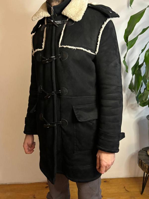 Стильное мужское дубленка с утеплением, идеальное для холодного времени года. Выполнено в классическом черном цвете, с элегантными декоративными элементами и воротником с мехом, которое добавляет образу уюта и современности. Практичный и удобный крой обеспечивает комфорт в носке. Цвет: черный Материал: плотная ткань с утеплением Декор: меховой воротник и контрастные вставки Застежка: стильные деревянные пуговицы с петлями З' эмний капюшон Рост на фото 188см Из дефектов фурнитура застежки немного облезла