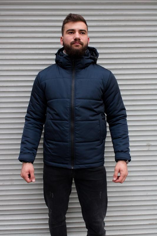 Чоловіча утеплен куртка темно-синя знімний капюшон