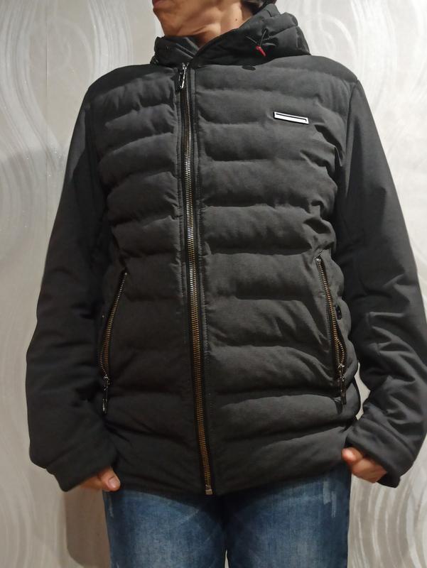 Чоловіча демісезонна куртка,на синтепоні.Виробництво Турция.Розмір написан 48.Орентуйтесь по замірам. Заміри: Плечи 47 см. Довжина рукава 65 см. Довжина 69 см. ПОГ 55 см. ПОБ 54 см. Стан ідеальний дефектів немає