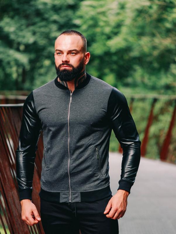 Бомбер із рукавами з еко-шкіри