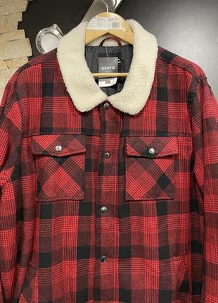 Якісна стильна чоловіча куртка дуже гарного темно-червоного кольору,з білим коміром,щільна тепла тканина,застібається на кнопки,по бірці розмір XXL,підійде і на XXXL.На теплу європейську зиму.Заміри:ПОГ 70-71 см,довжина рукава 69-70 см,довжина по спинці 83 см.