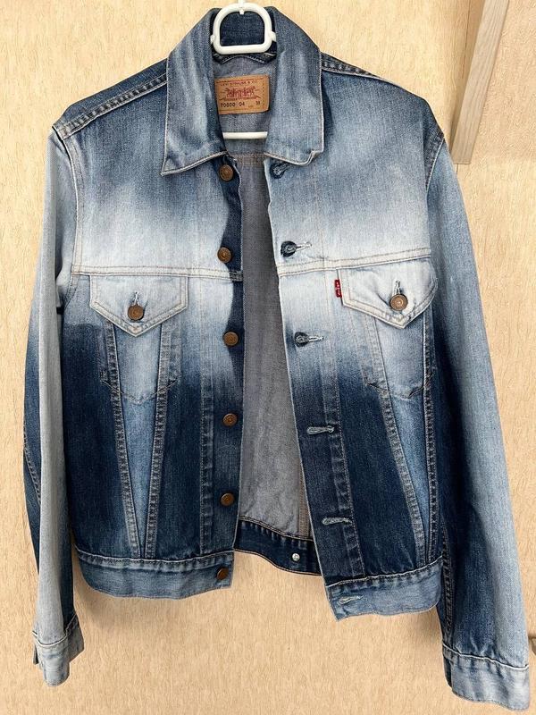 Джинсова куртка Бренд: Levi’s (США) Розмір: m (жіночий) або s (чоловічий) Колір: синьо-біло-блакитний Стан: бу, але в гарному стані