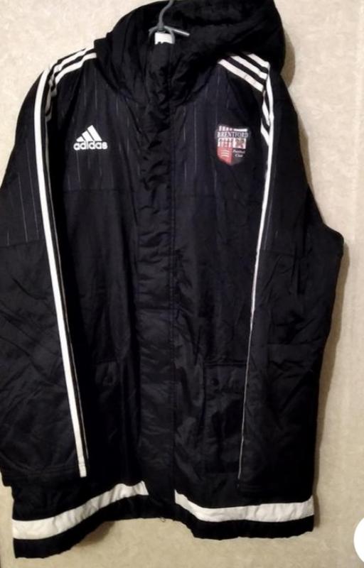 футбольная клубная куртка Brentford, размер XL, идёт на больший, сендипон, капюшон не снимается, плечо-17, длина рукава-66, длина изделия-94,5 ( от горловины), ширина по груди-72,5, ширина по низу-70,5