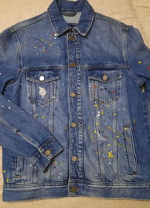 Куртка джинсовая мужская подростковая Reserved. Состояние новой. Размер L. Замеры: плечи 49см, длина 70см, ПОГ 55см, рукав 68см, низ 51см. Низ можно уменьшить пуговицами.