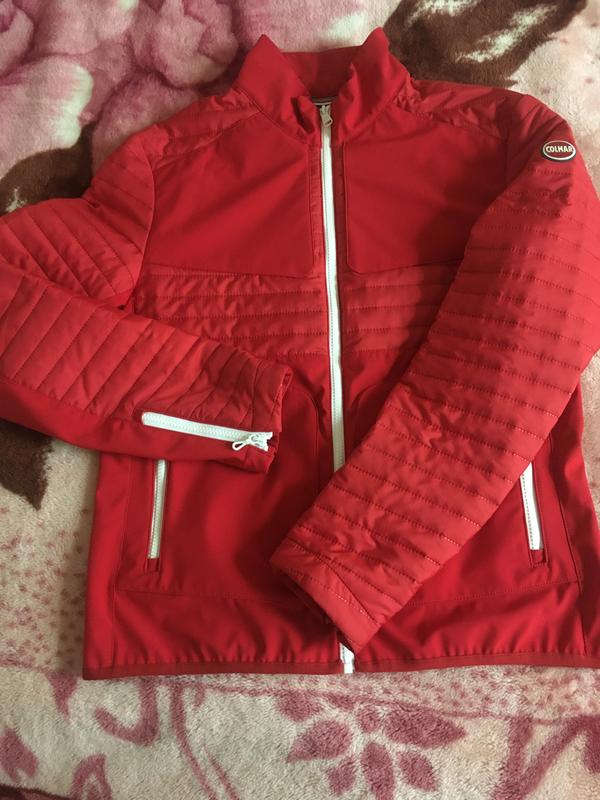 Суперова курточка. Цвет ярко красный. На передней части и рукавах прострочена. Имеет два кармана наружных и один в середине. Плечи 47 см., грудь п/о 53 см., рукав 66 см., длина 64 см.