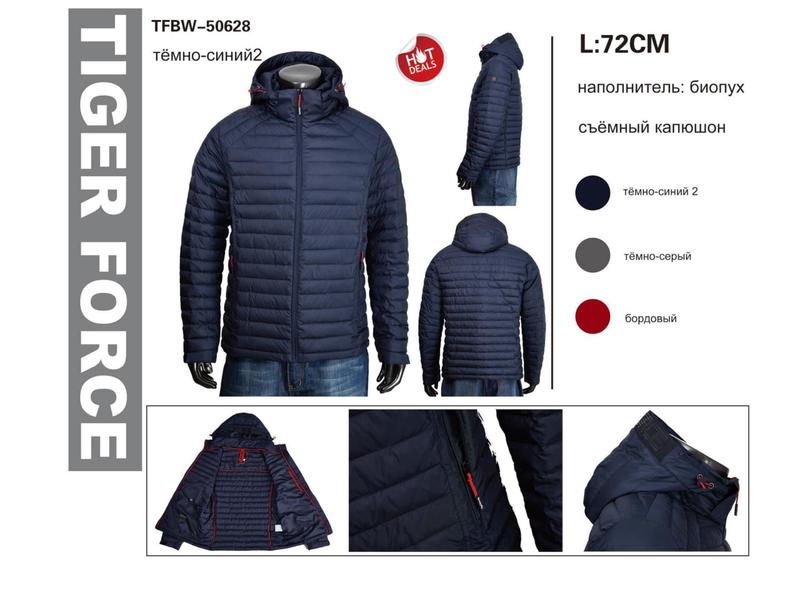 Качественная осенне-весенняя мужская куртка известного бренда Tiger Force. Производитель Китай. Цвет: темно-синий, серый, бардовый. Размер S (может подходить на М). Полномерная. Замеры: Плечи- 45, Полу обхват груди- 54 Пол ширина низ- 51 Длина рукава от плеча- 65 Длина по спине- 66 Материал полиэстр. Наполнитель биопух. Съемный капюшон. Боковые карманы на молнии. Удобные внутренние карманы. Качественная подкладка и фурнитура. Непродуваемая, мягкая, легкая.