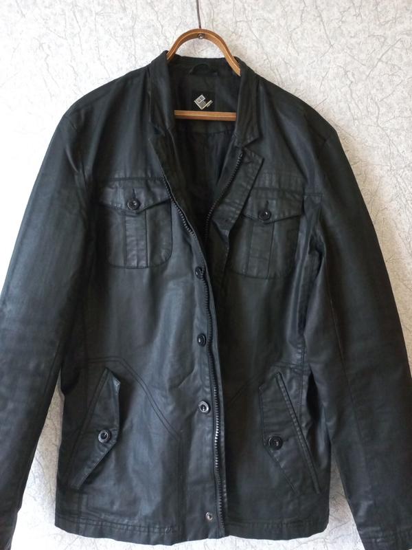 Очень красивая современная мужская куртка. Качественная, фурнитура брендированная. Ткань водоотталкивающая, на вид будто кожаная. Смотрится очень стильно. Длина 75см, плечи 50см, рукав 68см, пог 59см, пот 55см