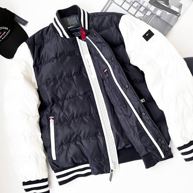 Куртка бомбер мужской Tommа Hilfiger Куртка мужская Томми Хилфигер Оригинальный Размер : М Цвет: синий / белый Наполнитель: биопух. Сезон: весна, осень Замеры М : Плечи 47, пог 59, ширина внизу 50, длина 69, рукав 69/50 см