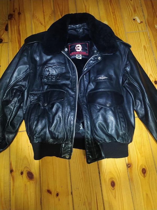 куртка- бомбер, черная, кожаная, 50 размер, с оригинальным значком, состояние новой