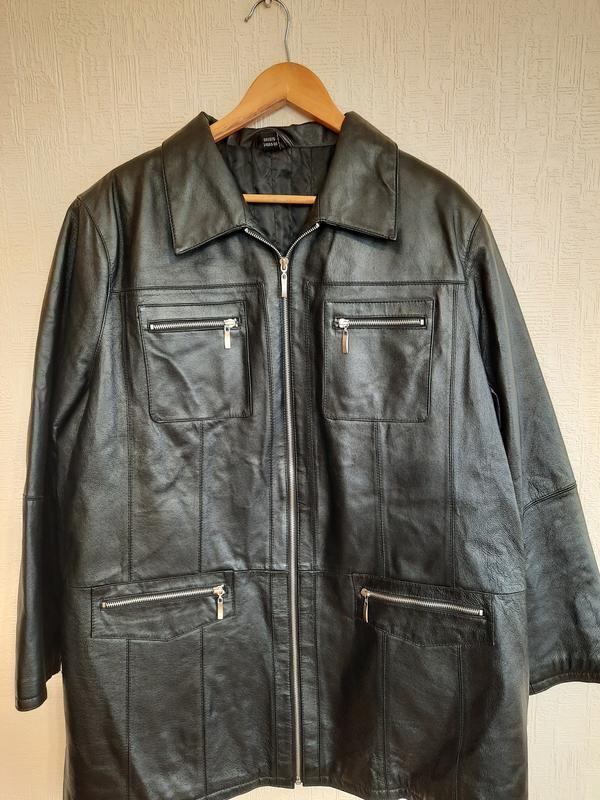 Мужская кожаная куртка в красивом состоянии из секонда.Длина изделия 80см,ширина по спине 45см,ширина по талии 67см,длина рукава 60см, длина плеча 15,5см.На этикетке указан 52раз,ле ориентируйтесь на замеры в описании.