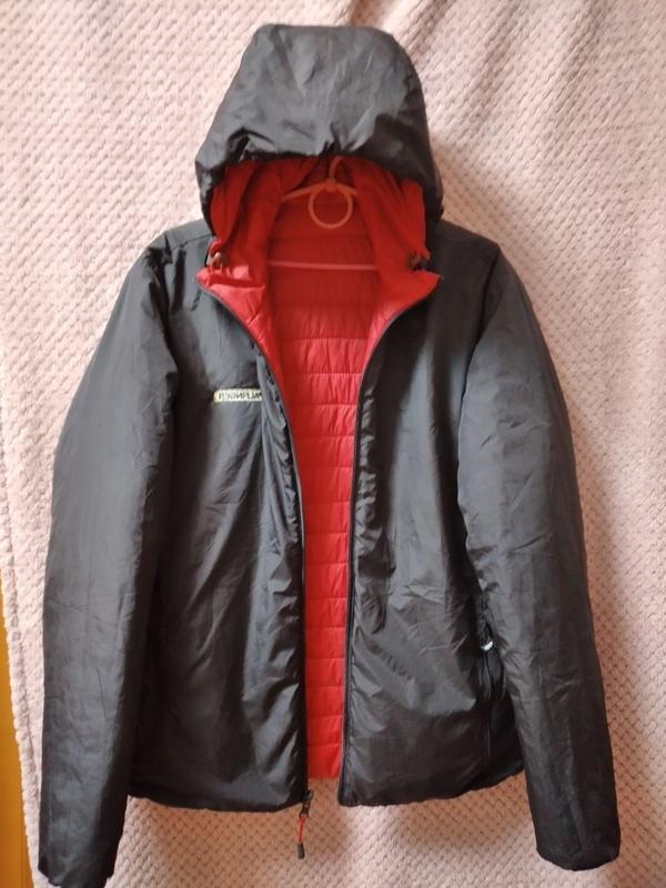 Чоловіча двохстороння курточка JAMES & NICHOLSON. Розмір М, L.Стан ідеальний. Колір чорний ,червоний. Сезон весна осінь. Наповнювач синтепон.Заміри: плечі 48см., пог.56см., по низу 53см. Рукав 68см., довжина по спинці 71см. Глибокий зручний капюшон, стягуеться куліскою