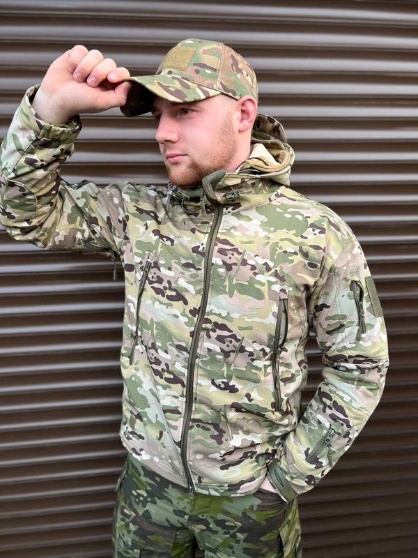 Куртка Soft Shell мультикам🌿 •Розміри: M-3XL - повнорозмірні⚠️ •Виробництво: Фабричний Китай🇨🇳 •Тканина -Soft Shell (Поліестер -90,3%, Спандекс- 9,3%) •Внутрішня частина- фліс •Фурнітура- міцна •Манжети на липучках •Глибокі кишені •Присутні велкро панелі під шеврони на рукавах •Затяжки знизу куртки.