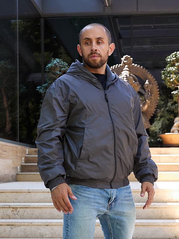 Мужская куртка ветровка с теплой подкладкой на флисе с капюшоном на молнии короткая плащёв...