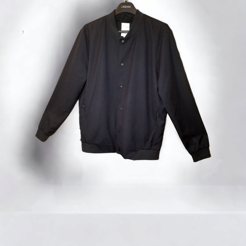 Все застежки работают Цвет насыщенный черный Подкладка целая и незатёртая Внешние карманы застегиваются на молнии Есть два внутренних кармана 60% полиэстер 38% вискоза 2% эластан Плечи 46 Полуобхват груди 58 Длина 69 Рукав 65 см