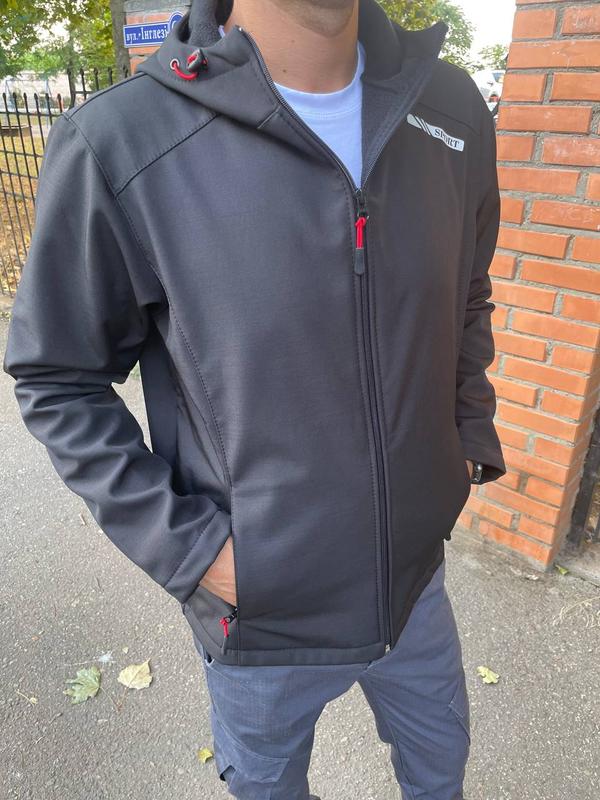 Мужская куртка с капюшоном на флисе арт. fish. 040 Размеры: 46-48, 50-52, 54-56 Тканина: софтшелл Цвета: черный, хаки Куртка имеет цельнокеен капюшон с резинкой и фиксаторами, центральная застежка и карманы на молнии. Качественная фурнитура и аква принт.