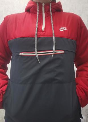 Осінньо-весняна куртка Найк. Дорослий розмір М. Є невеликий нюанс — потрібно красиво пошліфувати пахви. Доп фото скіну на Вайбер. Спереду суцільна кишеня. З боків змійки. Не промокає.