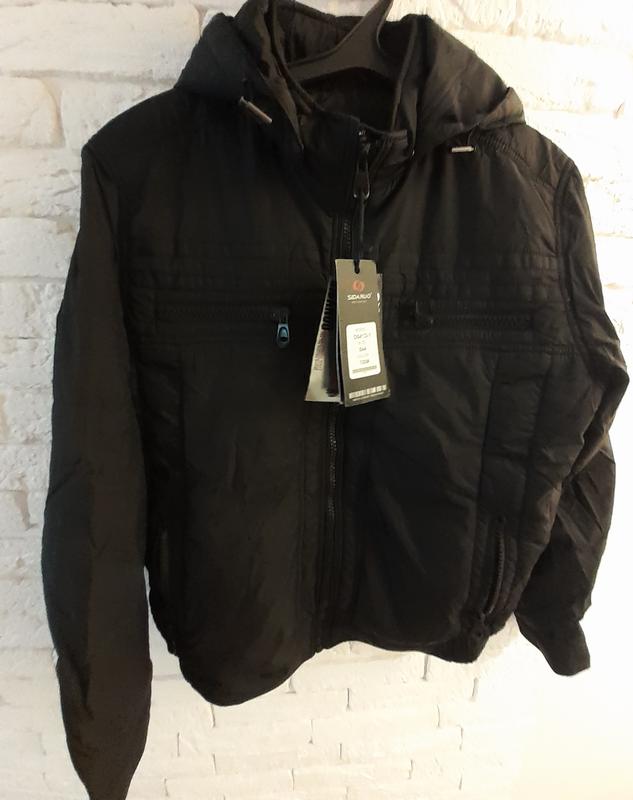 Новая мужская демисезонная куртка укороченного кроя с капюшоном.Колир черный. Производитель Китай.Сувременный крой слегка приталенный.Размер 50-52. Доп. замеры.ПОГ60см.Плечи 50см.Дл.рук.89см.Дл.куртки 69см.Торг возможен.