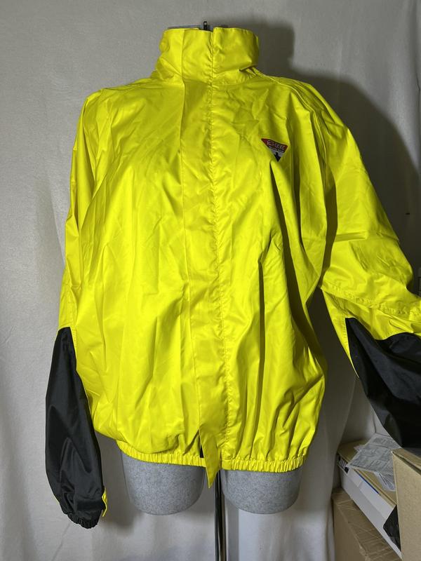Крутая куртка насыщенного желтого цвета, с подкладкой на замке, ззади - светло-отражающая...