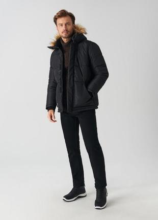 Объемная утепленная куртка. Размер xs (44-46),xxl (56-60). капюшон с искусственным мехом застежка-молния и кнопки три кармана длинные рукава кайма резинкой в рубчик декоративна нашивка на стеганой подкладке На модели размер M рост модели: 189 cm