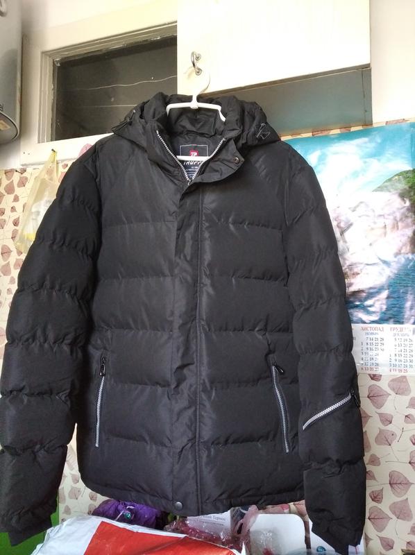 Куртка новая, стеганая, цвет черный, с капюшоном( регулируется объем),на молнии и кнопках, карманы косые на молниях, на рукаве карман на молнии, внутренний карман на молнии, утеплитель синтепон. По низу регулировочный шнурок обьема. Ткань : верх и подкладка -полиэстер. Размер 48-50,плечи 48, Пог- 61, рукав 66( вставлены трикотажные манжеты).