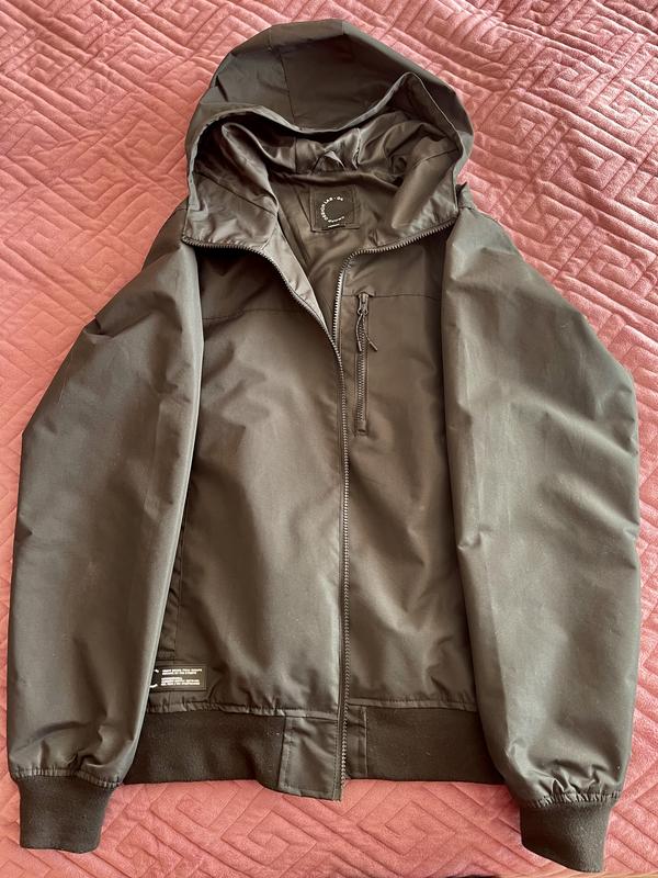 Куртка из вододоотталкивающей,черной,матовой ткани.От ветра,хорошо удерживает тепло.