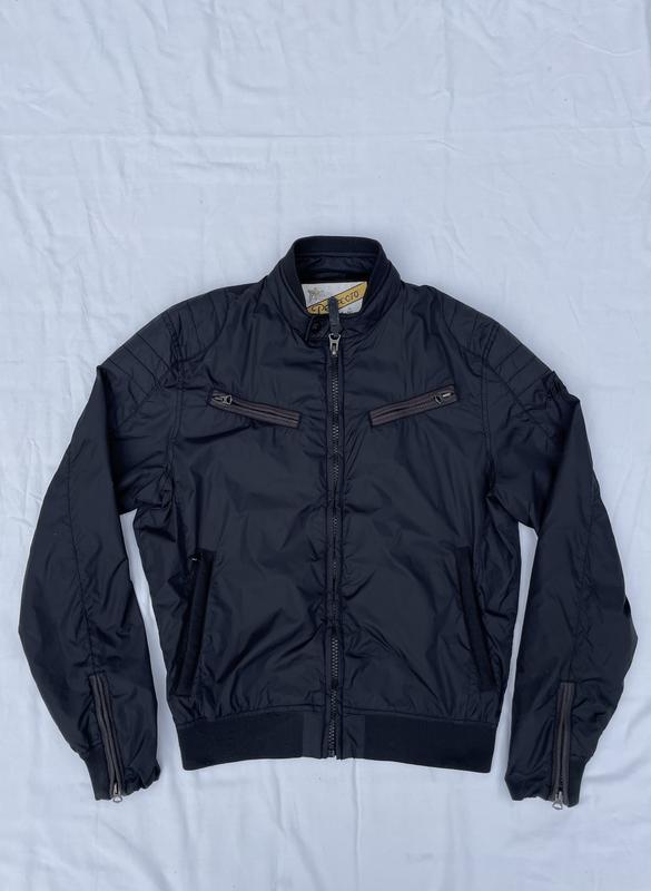 Линейка Perfecto - сидит на самом деле красиво, в размер, это ощущается по длине рукава и плечах, однако фит кузый, облегающий — так наверняка должен быть в таких куртках. На М рекомендовать бы надевать на футболку или тонкую рубашку - собственный летний вариант - снаружи нейлон, изнутри сетка - имеет 4 внешних кармана на молнии, один внутренний на кнопку - молнии на рукавах тоже довольно удобные - шьет тоже фиксируется на кнопки Размер: M (на S-M) Состояние: Хорошее, вот эти хлопковые вставки вокруг молний видно, что выгорели немного и состаревшие, также пуллер на основной молнии уже нет вида,mon, его лучше вообще снять. В остальном, заметных дефектов не обнаружено