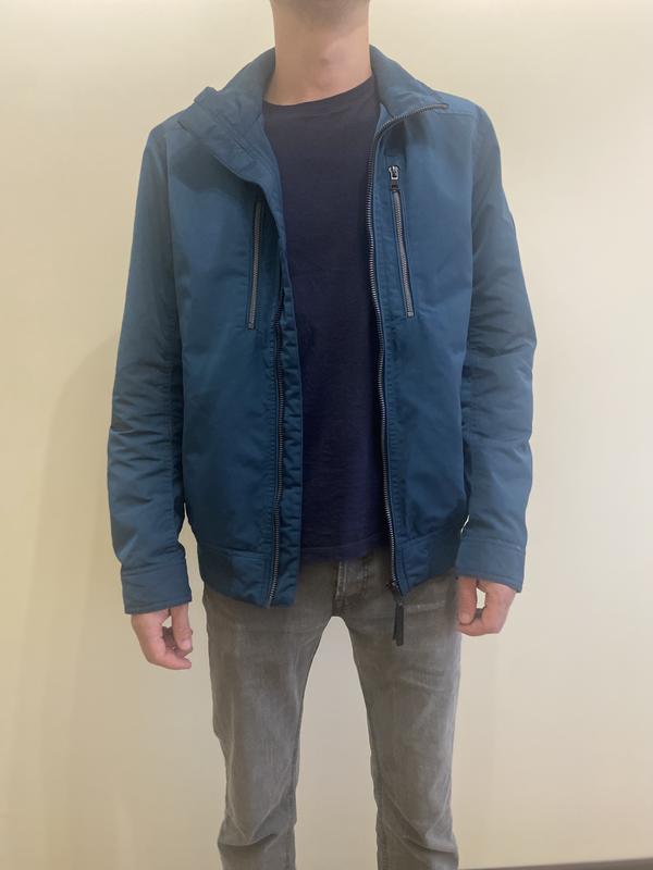 Очень классная теплая ветровка! Размер L Длина курточки 68 см Длина рукава от плеча 67 см Ширина плечей 48-49 см Ширина курточки по талии 54 см Стан - идеальный