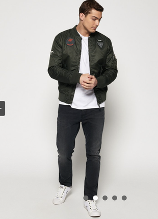 Оригинал Замеры , длина 66 Грудь 52 Рукав 67 Куртка-бомбер ограниченной серии Мужской летный бомбардировщик Superdry ограниченной серии. Куртка-бомбер имеет три внешних кармана, в том числе два спереди на кнопке, один на рукаве на молнии и один внутренний карман. Эта куртка имеет ребристые манжеты и ребристый низ, дизайн дополнен значками в стиле милитари, застежкой-молнией и нашивкой с логотипом Superdry возле подола. Модель носит М Limited Edition Flight Bomber Jacket
