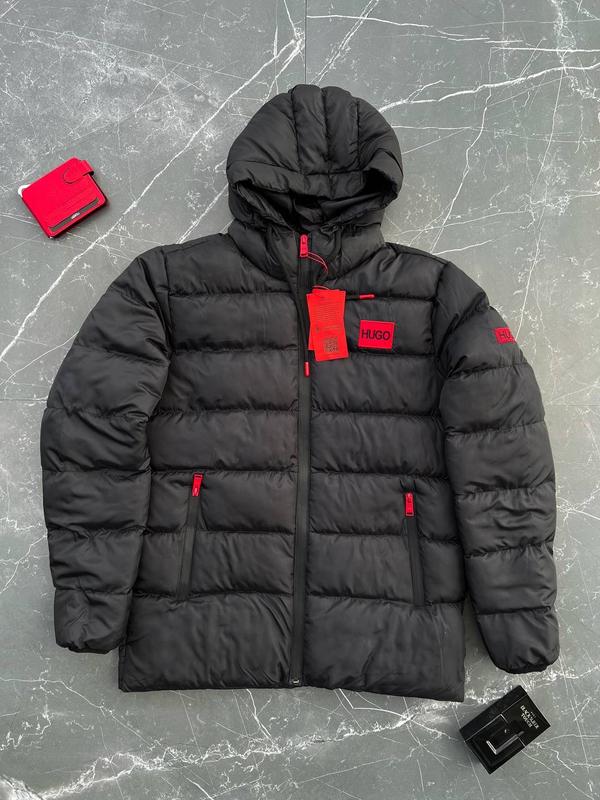 Мужская теплая осенняя зимняя куртка hugo boss черная / теплые куртки от меха босс