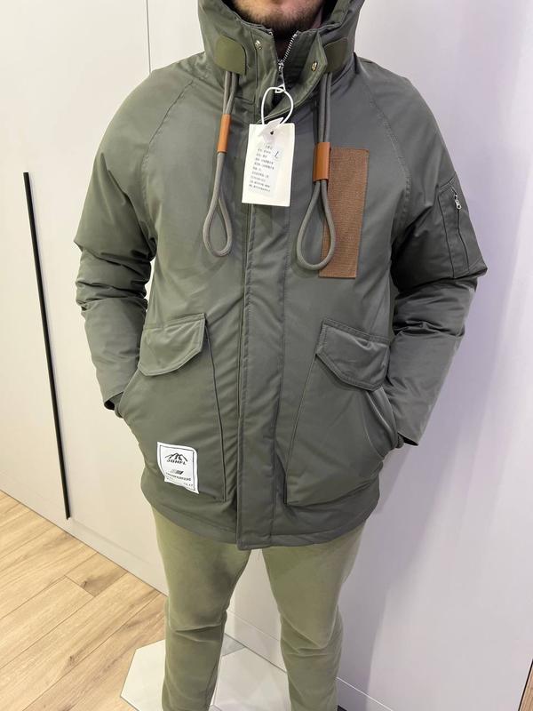 Купила мужчине, не выбрался размер, заказила такую же на размер больше потому что очень понравился. Пишется что на размер L, но маломерит лучше будет на M, или переходной размер M-L Ткань качественная и очень плотная, ветронепродуваемая, наполнитель пух, Внутренние карманы, капюшон, резинки на рукавах, качественные кнопки на куртке и фурнитура, цвет хаки. Пишите, скину замеры и фото на мужчине