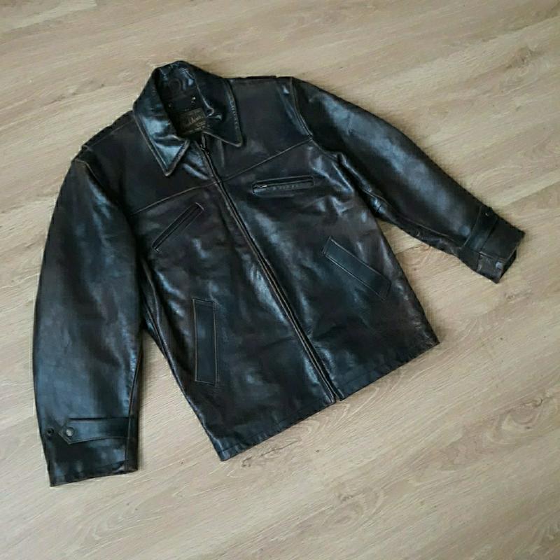 REDSKINS ▪︎Якісна мясиста натуральна шкіра, присутні штучні підтертості ,фурнітура метал, всередині 2кармана, без утеплювача ,колір чорнокоричневий. ▪︎напівобхват під рукавами 62см ▪︎плечі ширина 53см ▪︎довжина 74см ▪︎рукав довжина 63см