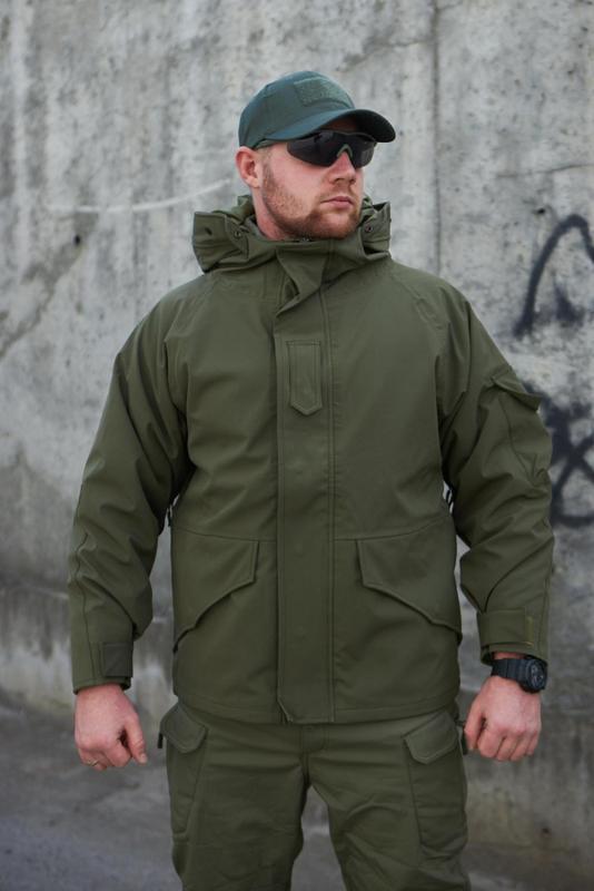 •Тканина -Soft Shell •Внутрішня частина- фліс •Фурнітура: подвійна (міцна) •Манжети на липучках •Глибокі кишені на кліпсах •Центральний глухий клапан на кліпсах S Плечі 44 Груди 56 Рукав 66 Спина 68 М Плечі 46 Груди 56 Рукав 68 Спина 70 L Плечі 48 Груди 56 Рукав 68 Спина 70