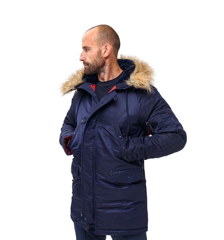 Бренд Chameleon Цвет Синий Мужская куртка Аляска синяя Slim Fit N-3B Navy - зимняя мужская парка выше колен (увзвешенного кроя) с темно-красной подкладкой. Внешний слой выполнен из прочного шлифованного нейлона с DWR пропиткой. Эта ткань хорошо защищает от холодного ветра и дождя. Куртка утепленная калодрированной полиэстером, волокна этого утеплителя не накапливают в себе влагу, быстро сохнут и хорошо дышат. Можно носить при температуре -20 С. Особенности пошива куртки Аляска Slim Fit N-3B Navy: Сноркель-капюшон с отстегивающимися искусственным мехом, который полностью закрывает лицо от ветра; Двойная ветрозащитная планка прикрывает центральную молнию; 6 карманов: 2 рукогрейки, 2 передних, 1 внутренний и 1 на левом плече; Рукава с трикотажными манжетами внутри, которые защищают от снега и ветра; Тракторная молния с двумя бегунками; Зауженный крой, благодаря которому куртка отлично садится по фигуре; Отстегивается искусственный мех на капюшоне; Утеплений капюшон. Плотность утеплителя: Торс 250 г / кв.м, рукава 200 г / кв.м Материал: Нейлон 100%, полиэстер 100%, силуконизированный синтепон 100%. Уход Рекомендуется сухой химчистка. Стирать жидким порошком без отбеливателей и средств для удаления пятен. Не применять ополаскиватели. Вывернуть наизнанку. Закрыть все застежки и молнии. Стирать с подобными цветами. Не сушить на батарее. Не гладить.