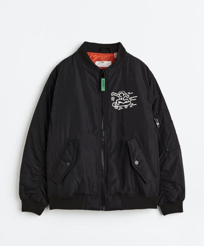 Крутий Бомбер від H&M Keith haring Лімітована версія в колабі відомого художника Keith Haring Розмір десь М-L Краще дивитися заміри Довжина 69 Плечі 51 Підмишки 59 Довжина рукава від воротника 78 Станин нової Дуже крута куртка