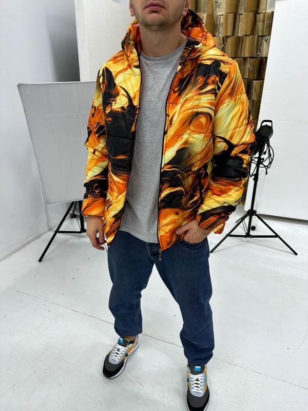 Яркая огненная мужская куртка с капюшоном Хочешь выглядеть ярко и стильно при этом не мерзнуть тогда это модель для Вас. Модная куртка с ярким принтом которая изготовлена из турецкой ветрозащитной плащевки с наполнителем синтепух. Который не сбивается при стирке и сохраняет свои свойства на протяжении многих лет. Теплая, легкая и очень удобная модель. Температурный режим -15. Эта куртка разбавит Ваши серые будни и дополнит любой образ своими яркими красками. Качественный пошив и фурнитура, боковые карманы на молнии. Эта модель является унисекс. так что она подходит не только мужчинам, но и прекрасно будет смотреться на девушках. С нашей размерной сеткой Вам будет легче подобрать размер Для более точного подбора размера укажите рост и вес Рекомендации по уходу: - Использовать только жидкое средство для стирки - Стирать при температуре воды - 30-40 - Не следует использовать кондиционеры или отбеливатели - Не использовать функцию сушки Преимущества работы с нашей компанией: - Обмен и возврат товара без проблем - Никаких предоплат если в заказе не больше двух позиций - Отправка наложенным платежом либо по полной оплате, как вам удобно! Стремление выглядеть стильно и презентабельно абсолютно не зависит от обстоятельств, образа жизни или погоды. Это естественный способ самовыражения, желание проявить собственную индивидуальность и подчеркнуть свой безукоризненный вкус. Формирование неповторимого облика требует тщательного анализа современных тенденций в моде и самое важное - наличие производителей, которые ориентируются на эти требования. Таблиця замірів: РозмірГрудиРукавДовжина кофти S56 см.66 см.69 см. M59 см.68 см.72 см. L61 см.69 см.72 см. XL66 см.73 см.79 см.