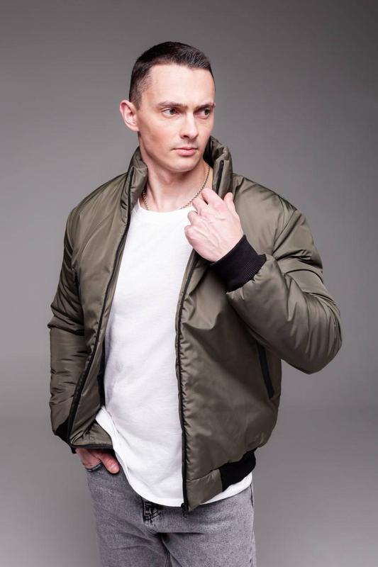 Артикул: 1681 Утепленная мужская куртка бомбер хаки Цена 1500грн Размеры: S,M,L,XL <unk> на фото L 188 см рост 85 кг вес Материал: полиэстер. Боковые карманы на застежках, молнии прорезиненные, есть внутренний карман. Манжетная резинка на поясе и рукавах. Воротник - стойка. Утеплитель - синтепон 150 плотности. 🧷 Производитель: Украина 🇺🇦