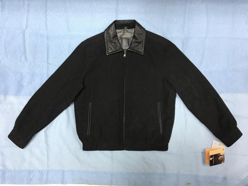 Оригинальный! Стильная короткая деми мужская куртка американского бренда Vertical by Robert Comstock, в черном цвете, производство Китай, материал: верх (под замш ) - 55% полиэстер, 45% нейлон, подклад - 100% полиэстер, воротник и отделка карманов - 100% натуральная кожа! Есть 2 нижних косых кармана и 2 больших внутренних кармана - на молнии и на кнопке, низ куртки резинка! Размер: US ( S ) : ПОГ - 56 см, длина ( молнии) - 53 см, длина ( спина ) - 65 см, рукав - 63 см, плечи - 46!см. Замеры длины спереди данные по длине молнии, со спины - от шва ворота, плечи - расстояние между швами плеча!