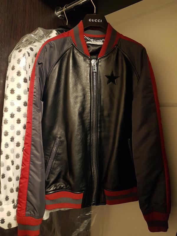 Красивая кожаная куртка, рукава водоотталкивающий материал, на манжетах. Состояние новое, одета один раз, на фото думаю видно, размер написан 50, но лучше ориентироваться на мои замеры. По грудной клетке 52. Длина 68, рукав от воротника 74, плечи 46 !!! Чехол, вешалка в подарок !!! Хороших покупок и мирного неба над головой !!!