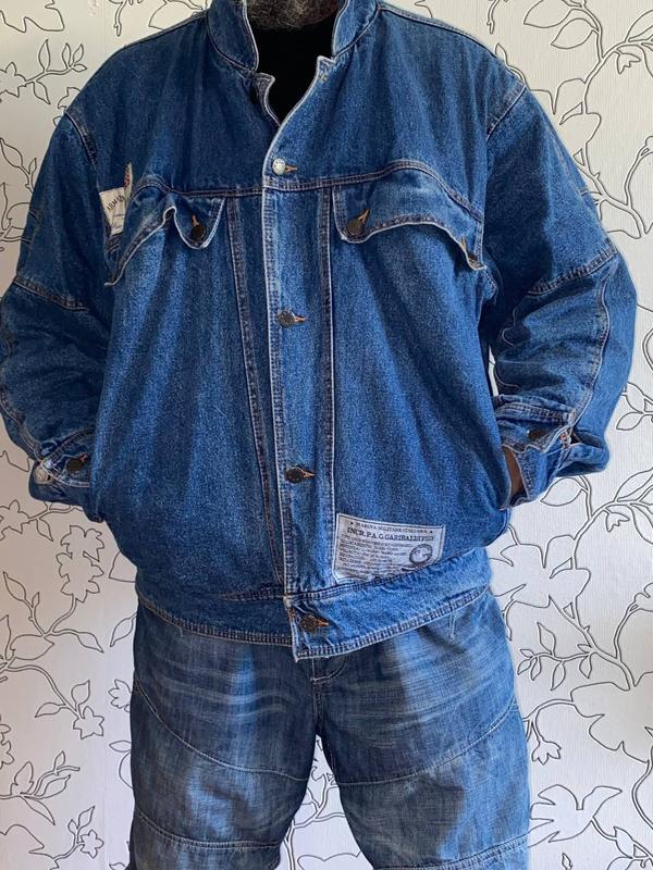 Очень модная и крутая куртка На утеплителе, демисезонный вариант В стиле оверсайз, не легкая,плотный деним, Италия Написанный размер М,но подойдет на ХЛ полномерный.Плечи 59,5см,ПОГ 73см,длина 73,5см,рукав от плеча 80см.