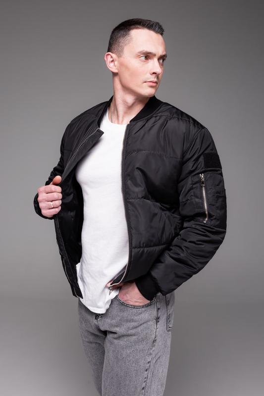 🔶 Артикул: 1425 🥼 Мужская черная куртка бомбер утепленная 📐 Размеры: S, M, L, XL 👍 Материал: полиэстер, манжеты - резинка, синтепон утеплитель 150 г/м. ветрозащитная планка, два боковых кармана и один внутренний, карман на рукаве на молнии. 🧷 Производитель: Украина 🇺🇦