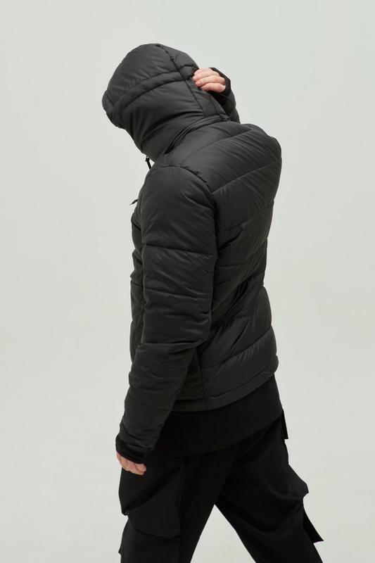 Цвет: черный Ткань: плотный поликотон, наполнитель: био пух Особенности модели: - куртка прямого кроя, средней длины - съемный капюшон с регулировкой - два кармана на фронтальной части изделия: один под косой водонепроницаемой молнией, другой под клапаном - два кармана по бокам изделия сшитых молниях - внутрішня кишеня - состав изделия и размер в виде печати - лямки-держатели на внутренней стороне изделия - снизу изделие на резинке с фиксаторами