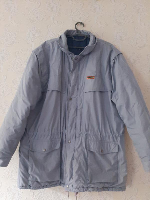Демисезонная куртка с карманами на молнии. Внизу шнурок для регулировки ширины. Рукав на две кнопки Размер 54 .,Замеры Длина 85 см. Рукав длина 62 см Полуобхват груди 70 см