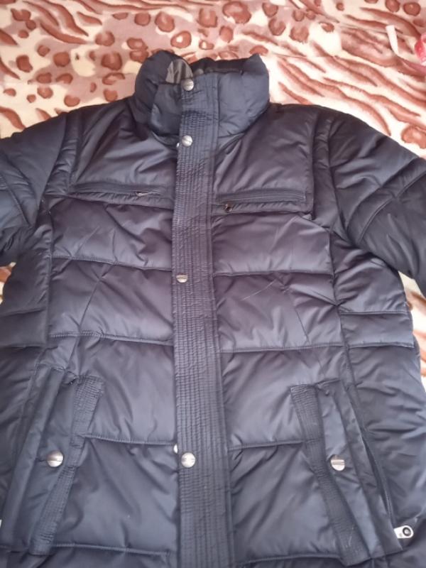 Очень теплая зимняя куртка, качественный пошив и фурнитура, имеет 2 внутренних и четыре внешних кармана, капюшон снимается, цвет - насыщенный темно-синий, ближе к черному Указан 52 размер. Замеры: полуобхват под рукавами -59-60 см ширина куртки - 58-59 см (полуобхват) длина куртки по спине от воротника - 86 см длина - рукава 72-73 (есть внутренние манжеты) плечи - 50 см