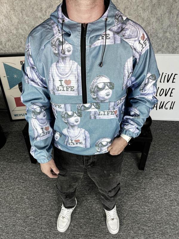 Анораки виготовляються з водовідштовхувальних та водонепроникних матеріалів, які захищають від вітру та невеликих дощів. Це дозволяє залишатися сухим та комфортним у несприятливих погодних умовах. Анорак має передню застібку, яка є на блискавці. Анорак має відмінний стиль, який поєднує в собі спортивний та урбаністичний вигляд. Він може бути використаний для прогулянок, велосипедних поїздок, подорожей або як частина стильного образу. Завдяки своєму легкому матеріалу та спеціальній конструкції, анораки забезпечують комфорт та зручність під час активних вихідних та прогулянок. Чоловічий анорак - це стильний і функціональний варіант верхнього одягу, який додає особливий акцент до вашого гардеробу, особливо в умовах змінної погоди. Таблиця замірів: РозмірГрудиРукавДовжина кофти S54 см.67 см.69 см. M56 см.69 см.70 см. L60 см.71 см.72 см. XL63 см.71 см.72 см.