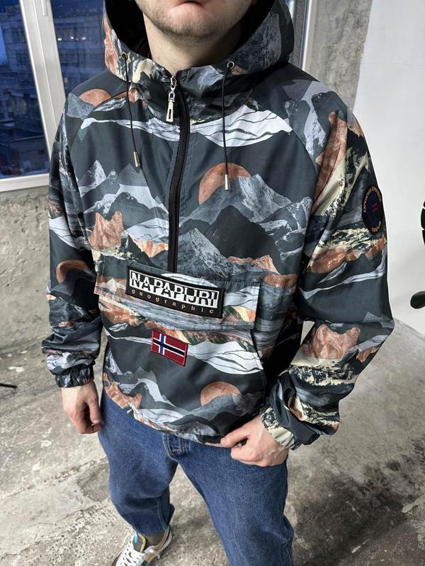 Анораки виготовляються з водовідштовхувальних та водонепроникних матеріалів, які захищають від вітру та невеликих дощів. Це дозволяє залишатися сухим та комфортним у несприятливих погодних умовах. Анорак має передню застібку, яка є на блискавці. Анорак має відмінний стиль, який поєднує в собі спортивний та урбаністичний вигляд. Він може бути використаний для прогулянок, велосипедних поїздок, подорожей або як частина стильного образу. Завдяки своєму легкому матеріалу та спеціальній конструкції, анораки забезпечують комфорт та зручність під час активних вихідних та прогулянок. Чоловічий анорак - це стильний і функціональний варіант верхнього одягу, який додає особливий акцент до вашого гардеробу, особливо в умовах змінної погоди. Таблиця замірів: РозмірГрудиРукавДовжина кофти S54 см.67 см.69 см. M56 см.69 см.70 см. L60 см.71 см.72 см. XL63 см.71 см.76 см.