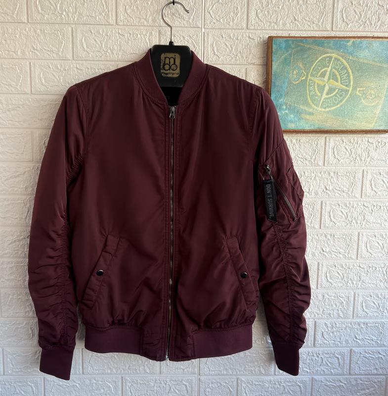 Бомбер Pull & Bear Размер М Замеры: длина 68, ПОГ 58, рукав от шеи 80 Состояние легкое б/у, в целом идеал, но на последнем фото есть малая зацепочка, на внутренней стороне рукава (не видно вообще при носке) Поэтому цена приятная Качественный материал, отлично смотрит со стороны, материал переливается на солнце, модель с личной лентой, смотрит классно и стильно Оверсайз фит, сидит на теле свободно Защитит от ветра и дождя, есть наполнитель внутри, поэтому подойдет на прохладную погоду Рекомендую присмотреть