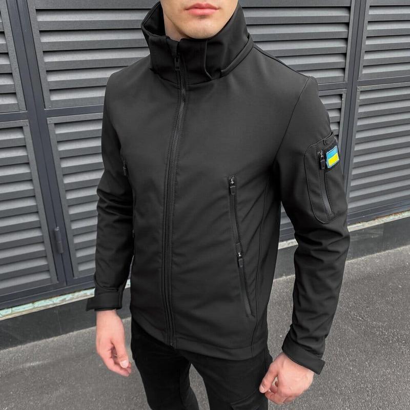 Куртка soft shell черный от ветра и дождя тепла 5 карманов вентиляция флаг украины весна-о...