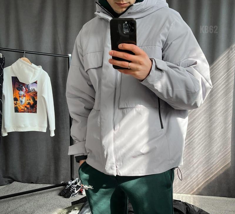 Чоловіча сіра весняна модна куртка з великою кількістю карманів з плащівки -5 +15